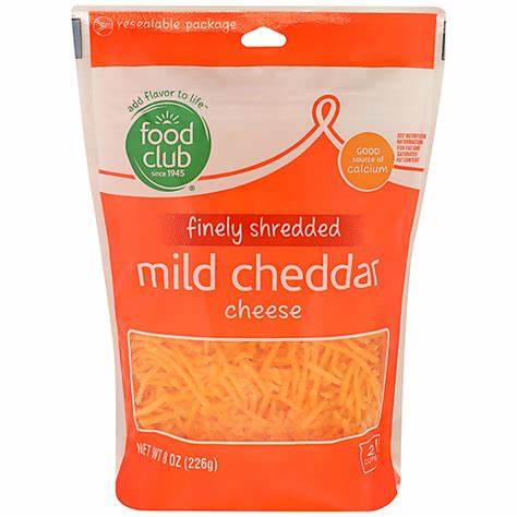 Food Club Finely Shredded Mild Cheddar 8oz